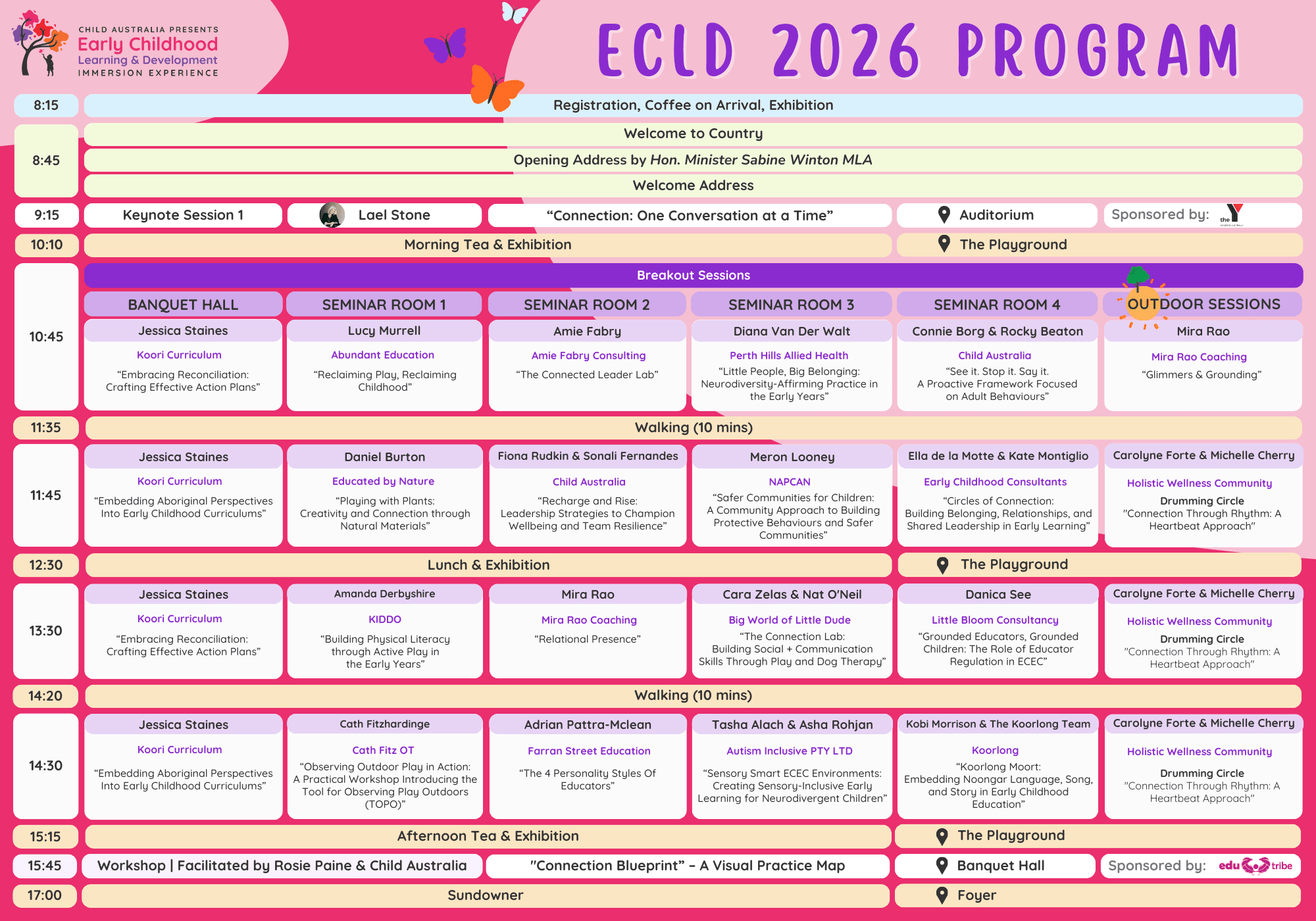 We are delighted to bring you this year’s ECLD Immersion Experience program* filled with highly acclaimed keynote and invited speakers passionate about their research, profession and improving learning and developmental outcomes for children.
