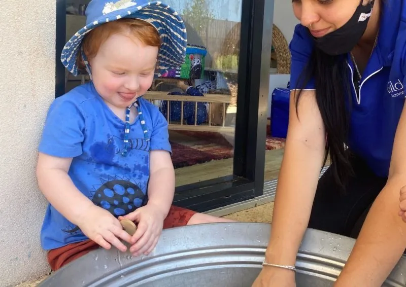 If you’re scheduling in waterplay be sure to warn or remind parents that children will need an extra change of clothes, a towel or to pack bathers etc. Always remember to be safe and supervise closely around any water experiences with young children.